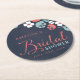 Bluish Chalkboard Floral Bridal Shower Round Paper Coaster