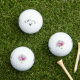 A golf ball with a beautiful flower bouquet image. The background, image and text can be personalized. Original artwork by W.B.