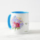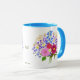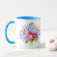 A mug with a beautiful flower bouquet image. The background, image and text can be personalised. Original artwork by W.B.