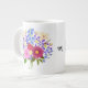 A speciality mug with beautiful bouquet of flowers. The background, image and text can be personalised. Original artwork by W.B.