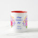 A valentine's mug with beautiful flower bouquet images. The background, image and text can be personalized. Original artwork by W.B.