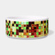 Graphic art with blurred colourful small squares in clear green, orange,red, yellow, blue and brownish with light relief or depth similar to tiles with shades of darkest red.