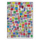 Abstract art of squares of different colours outlined in black against a white background that has been blurred.
