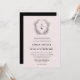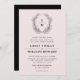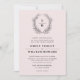 A hand drawn wreath of leafy branches frames the couple's two-letter monogram while elegant type allows for maximum flexibility between formal or casual wording all while forever classic, the softest blush feels sophisticated and timeless when paired with rich black.