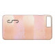 Pretty iPhone 7 Plus case, with a watercolor paint stroke pattern in pink blush and gold. Personalise the single black letter monogram, for yourself or as a great gift to her.