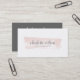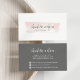 Chic and elegant business cards in blush and grey feature two lines of custom text in handwritten calligraphy script and block lettering, on a blush pink watercolor swash. Add your full contact details to the back including social media usernames.