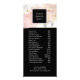 This chic, elegant business price list and services menu features a trendy blush pink watercolor splash over a white and grey marble look background, with glamourous faux gold accents. The main portion of the card is black and contains your list of services with the corresponding prices. The perfect modern look for anyone in the beauty, hair, nails, or lashes business, as well as stylish professions such as interior design and bloggers.