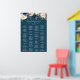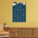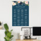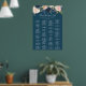 This blush and navy blue alphabetical seating chart poster is perfect for a floral wedding. This sign can be used to organise your guests alphabetically or by table number. The classic and elegant design features modern watercolor navy blue and blush pink flowers on a teal blue background. This wedding poster includes enough room for up to about 120 guests. Make room for more (or less) guests by clicking the "customise" button and decrease or increase the size of the font. In addition to the placement of each guest, personalise this sign with the names of the bride and groom and the wedding date.