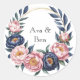 Blush and Navy Blue Wedding Classic Round Sticker
