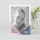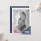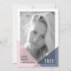 Our modern and trendy graduation photo announcement or party invitation features your portrait orientated photo on the front, with the graduate's name, school and graduation year. A thick white border and colorblock detail in transparent blush pink and navy blue adds a geometric and trendy look to your senior portrait. Add your party details to the back in a crisp block typography in chic navy and white; or, clear the back text to use as a simple graduation announcement.