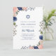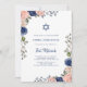 These beautiful Bat Mitzvah invitations feature pretty blush pink and navy blue hand painted watercolor flowers on a crisp white background. A boho chic and trendy style that also features a matching Star of David. A mix of bold, serif text and handwritten script.