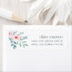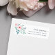 Elegant floral return address labels feature a spray of pink watercolor flowers and sage green leaves along the left side. Personalise with your return address in slate blue-grey lettering.