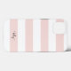 Chic personalised case features pale blush pink and white stripes with your name, monogram or favourite phrase in modern black script lettering. Classic preppy design is perfect for adding both style and protection to your phone in a trendy pastel colour palette.