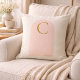 Feminine minimalist accent in soft ivory, featuring a centered blush arch and refined gold serif monogram. Designed for women who love neutral decor with subtle detail, this throw pillow brings balance to bedrooms, reading chairs, and curated living spaces.