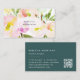 Garden floral chic business cards feature a background of rose and peony flowers in pastel watercolor shades of blush pink and spring green, with your name or business name overlaid in the centre. Add your contact information to the reverse side in white on rich jewel tone jasper green, and customise the QR code to make it easy for customers to connect.