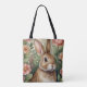 This charming tote bag features a whimsical Easter bunny surrounded by vibrant florals, adding a fresh and festive touch to your springtime style.