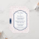 Custom template engagement party invitations in elegant light pastel blush pink, dark navy blue and white classic and chic floral damask vintage pattern. Fully customisable with your engagement party details. Also available in a wide range of matching wedding products.