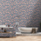 Blush & Blue Modern Floral Vines Pattern Wallpaper