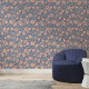 Beautiful modern floral wallpaper with a pattern of blush flowers in a simple modern style with vines and leaves in silver gray curling like tendrils around the pretty flowers against a muted dark blue background. This blush and blue floral wallpaper will look great in your home. Why not in your living room or your bedroom, either the whole room or as a gorgeous accent wall.
