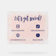 Translucent blush pink acrylic small business sign for promotional use to share your social media and website address with your customers and clients with Let's get social! in a blue script, dark blue social media icons, and your social media handles in dark blue modern fonts against a splash of blush watercolor that's a little transparent at the edges. Promotional social media acrylic sign for your small business in blush pink and navy blue. Acrylic social media sign to promote your small business in a pretty combo of blush and blue.