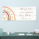 Decorate your Baby Shower with a gorgeous Bohemian rainbow banner in blush pink. Easily edit the template to read Mum to be's name and event date. This banner is a coordinated item for our Boho Rainbow design. A beautiful neutral coloured rainbow with gold foil hearts. Blush Bohemian Rainbow Baby Shower Banner.