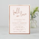 Blush Bridal Shower Foil Invitation. Simple and stylish, this elegant 'fall in love' bridal shower invitation features a classy border and elegant calligraphy script pressed in real rose gold foil on a blush | pale pink background.