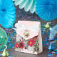 Summer colours of Blush, Burgundy, white roses and sage leaves with a pink textured paper background for a Wedding wedding thank you favour box
