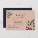 This elegant fall RSVP card features a soft blush background accented with burgundy and green watercolor foliage. The design perfectly matches autumn and winter wedding themes, making it easy for your guests to reply with their attendance and meal preferences.