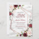 Modern, elegant and trendy, this bridal shower invitation design features a faux copper rose gold geometric embellished with burgundy marsala pink watercolor roses and flowers on faux marble background. The back of the card features a coordinating watercolor texture and florals. Copyright Elegant Invites. All rights reserved.