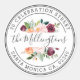 Modern envelope seals featuring blush pink and burgundy marsala watercolor peonies and roses with elegant greenery. Your family name is displayed with a handwritten script font and your return address details are curved over the top.