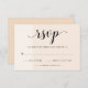 These modern wedding RSVP cards feature soft shades of blush, bisque, and linen with trendy black typography.