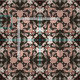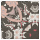 fabric printed with delicate vintage art deco posies and flowers in blush, peach, and coral on black.