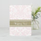 Elegant wedding vow renewal invitations in chic light pastel blush pink and white vintage floral damask pattern with rustic style tan beige sand brown frame. Fully customisable text to include your vow renewal ceremony details.