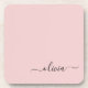 Blush Dusty Pink Modern Script Girly Monogram Name Coaster