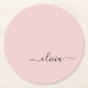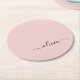 Blush Dusty Pink Modern Script Girly Monogram Name Round Paper Coaster