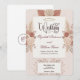 Blush and dusty rose watercolor florals with a faux rose gold sunburst accent create a soft romantic garden aesthetic suited for spring and summer wedding celebrations.The layout follows traditional formal wedding stationery structure with a centered typography hierarchy framed by a thin double-line border and symmetrical floral clusters. Watercolor roses and hydrangea blossoms appear in blush pink, dusty rose, peach, and cream tones, accompanied by delicate foliage, berries, and pampas grass accents that create a balanced botanical composition. A decorative faux rose gold sunburst element at the top introduces a subtle Art Deco influence and visually anchors the elegant calligraphy headline paired with classic serif text for names, date, and venue details.This is a flat printed image with a faux rose gold metallic effect, not actual raised foil or metallic material.