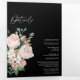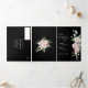 This blush floral black tri-fold wedding invitation design features beautiful chic neutral backgrounds of black or white with simple modern typography and elegant calligraphy to set a sophisticated tone for any style of event. Each product is embellished with gorgeous blush pink roses and peach and ivory hydrangeas arranged with lush eucalyptus and greenery leaf details, along with timeless geometric gold frames for a luxurious look. Mix and match this coordinating collection for an effortless personalised dream wedding aesthetic for a wide range of casual to formal styles. For more coordinating designs, this design is also available in pastel pink and navy blue. As with all of our design, if you have any questions or special requests please just ask.