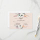 Blush Floral Boho Pampas Grass Palm Foliage RSVP has pale blush pink background with White Florals, Boho Pampas Grass and Tropical Palm fronds that are dried for a pretty Bohemian style RSVP response card. Your monogram initials on the reverse side with floral clusters. Copyright, Audrey Jeanne Roberts, internationally licensed artist and product designer.