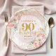 Blush Floral Gold Frame Personalized 90th Birthday Paper Plate