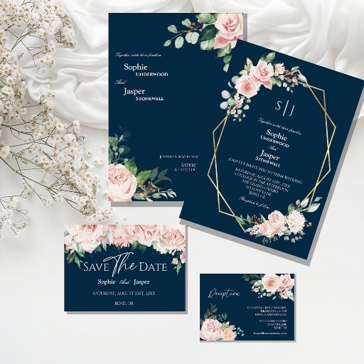 Blush Floral Navy Wedding CollectionDesigned by Christopher and Robyn Caldwell