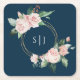 Blush Floral Navy Wedding Monogram Square Paper Coaster