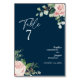 Blush Floral Navy Wedding Table Number Card