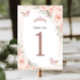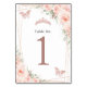 Blush Floral Rose Gold Birthday Quinceanera Table Number
