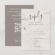 This blush wedding RSVP card combines elegance and functionality with a QR code response option for modern convenience. Designed with watercolor floral accents and a classic meal choice section, it blends simple typography with elegant calligraphy script for a timeless look. Perfect for couples seeking a classy and sophisticated design to complement their wedding stationery suite.