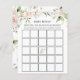 Baby shower bingo card featuring watercolor pink blush florals and greenery. A fun way to interact with shower guests while the mum-to-be opens her gifts at her wedding shower.