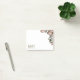 Floral sticky notes personalised with your initials in pale olive green in a decorative distressed font with pretty blush pink flowers.