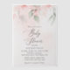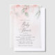 Invite friends and family in style and set the tone for your special day with this charming baby shower invitation. Design features blush pink watercolor flowers and greenery on pale pink background.