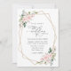 Invite friends and family in style and set the tone for your special day with this charming wedding invitation. Design features blush pink watercolor flowers, greenery and gold frame on white background.