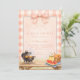 A sweet and feminine Baby-Q design featuring soft blush gingham and a statement bow at the top. The watercolor grill scene, fresh lemonade, watermelon slices, and picnic basket details create a charming backyard gathering feel, while the wooden table base adds warmth and texture. The structured inner panel keeps the layout clean and elegant for event details. Perfect for a summer baby shower with a soft pink picnic aesthetic.
