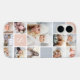 Chic photo collage phone case features eleven of your favourite square photos in a gridded layout with contrasting squares in blush pink and neutral grey. Personalise with your single initial monogram in white.